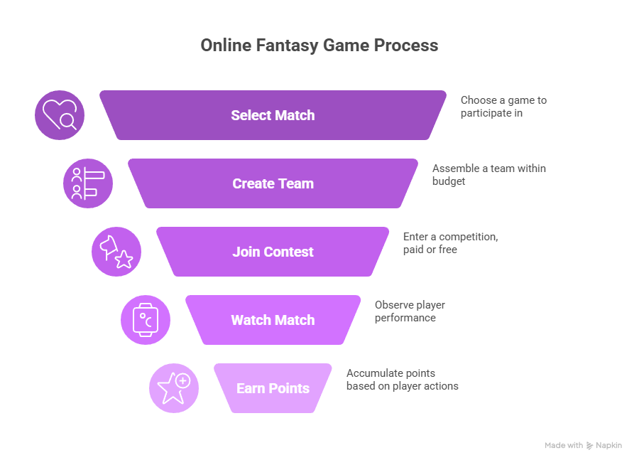 First, you join a fantasy game platform. Next, you select a match you want to play. After that, you create your team.